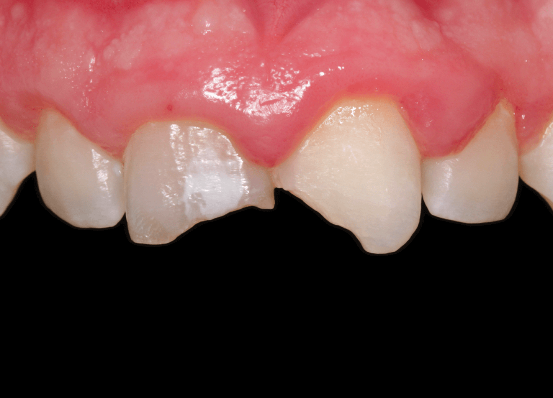 1. A pediatric patient presented with a history of dental trauma occurring approximately five years prior, for which no timely treatment had been provided. (Image 1)